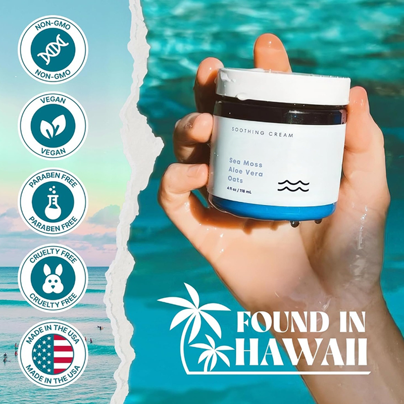 Welcome to the soothing world of our natural eczema relief cream, crafted with care amidst the tranquil shores of Hawaii. This miraculous cream harnesses the power of the ocean's bountiful treasures to deliver unparalleled magic. Dive into a world of pure bliss as your skin experiences the transformative touch of sea moss and oats.