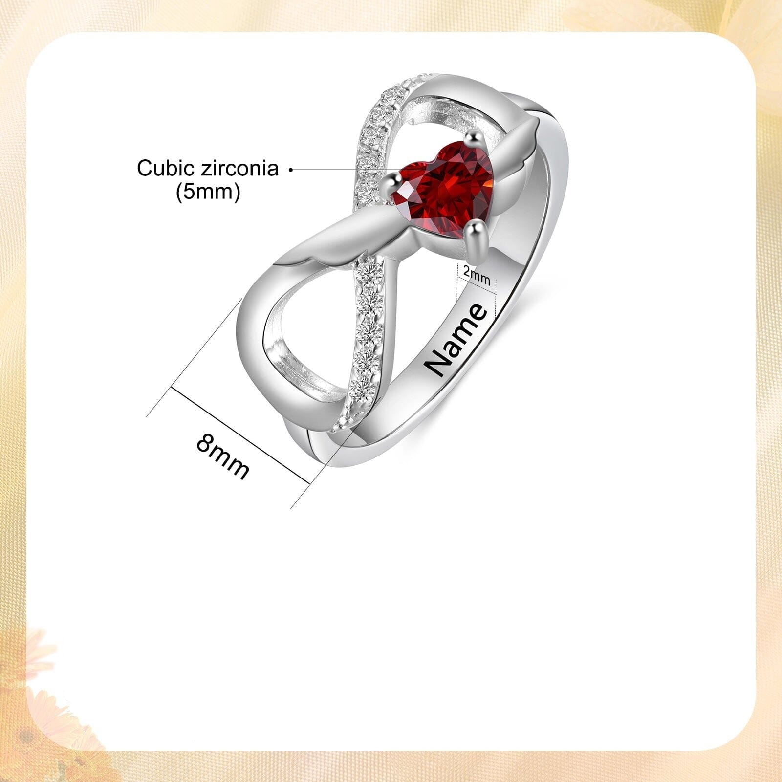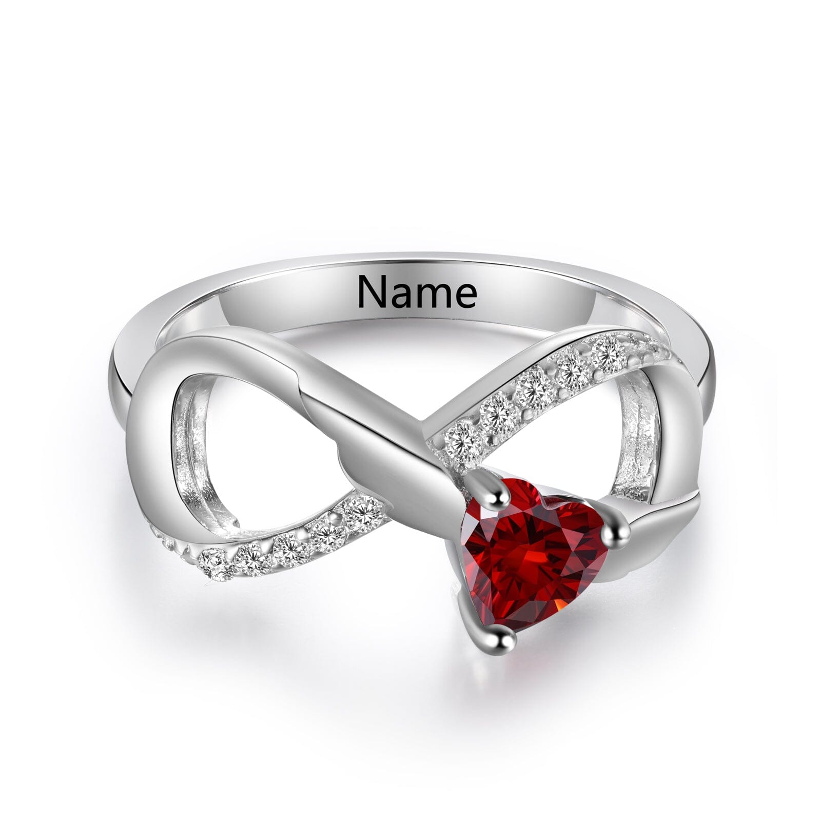 Sterling Silver Angel Wings Infinity 1 Heart Birthstone Ring with Accents and Engraving