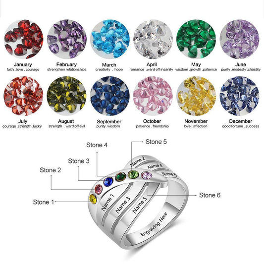 Sterling Silver 6 Round Criss Cross Birthstones Ring